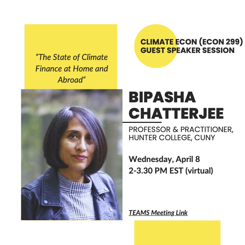 April 8 2026 Dr. Bipasha Chatterjee – The State of Climate Finance at Home and Abroad.